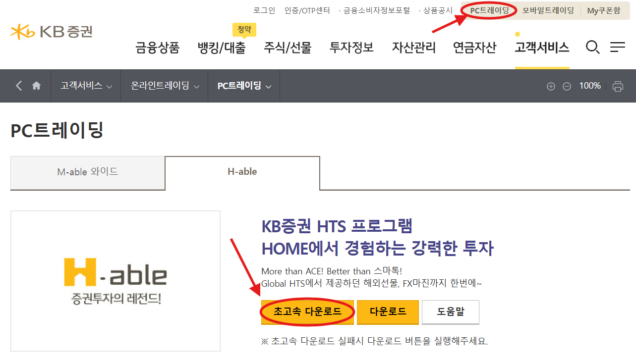 KB증권 HTS 프로그램을 다운로드하여 실행한 후 로그인합니다.
