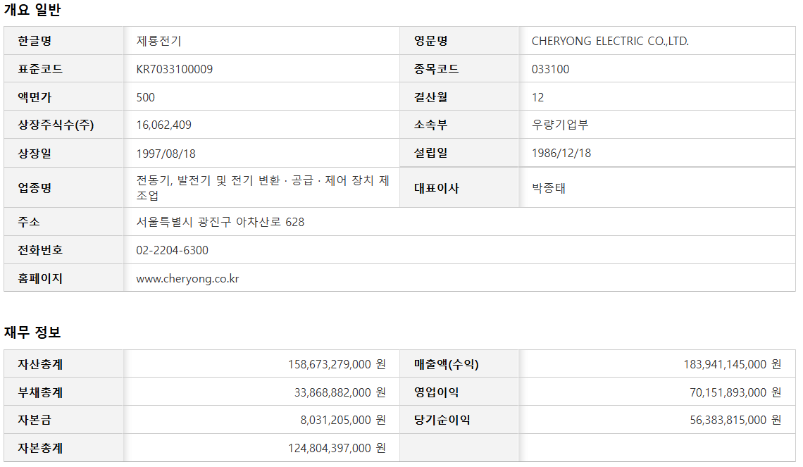 📌 1. 제룡전기 기업 개요